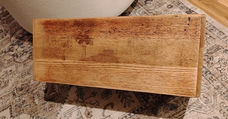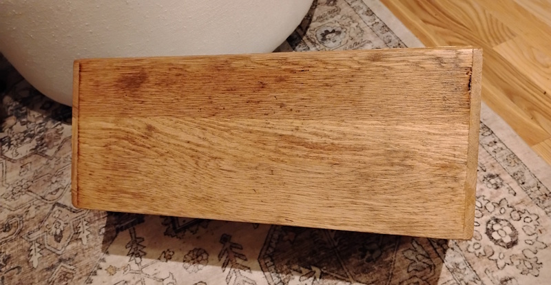 This is a one of a kind item. Half lap joints at the corners. Glued and pinned w/16g nails w holes filled. 1/4″ bottom of the unit is routered into the sides. Refinished with 2 coats of poly. This is a very solid piece built to last a lifetime. Unsure of wood species but I believe some flavor of hardwood.
